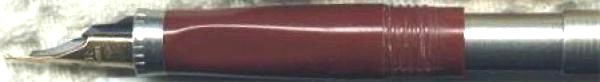 French alternative to the ruled lines. Notice how the lines are cut across the entire width of the gold-colored ring. Also the ring does not continue off the edge. I have come to learn that these are really sections for the Parker Premier, the luxury successor to the 75 line. Update of 12-14-2003:I discovered that this section has a serial number inscribed near the barrel threads. I don't know if this is true for all sections of this kind. See more of this here. | |