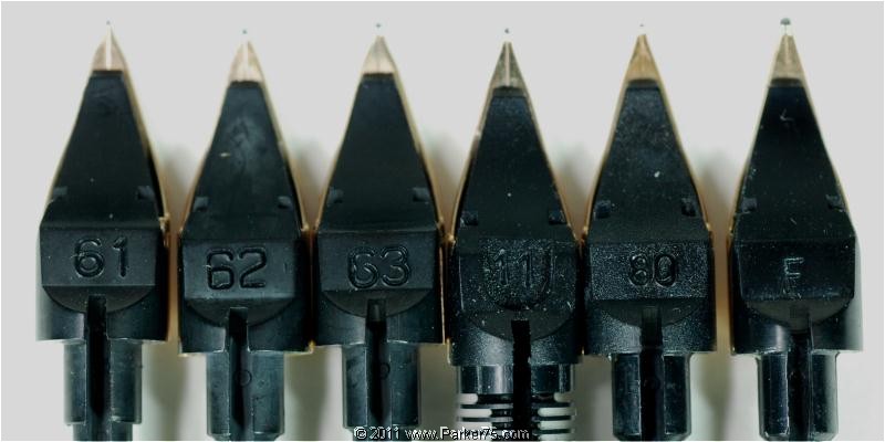 The following information was obtained from a Parker 75 nib guide brochure printed in April, 1967. To see a side-by-side comparison, click here.