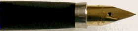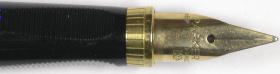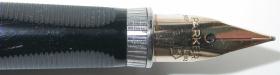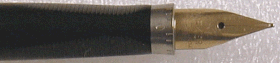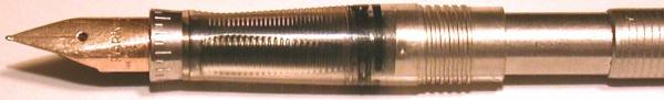 When first production began, the section ring was chrome-plated with ruled lines and the zero reference engraving. The matching nib was 14K gold. | |