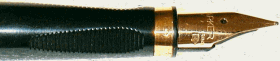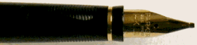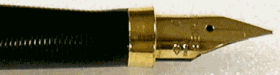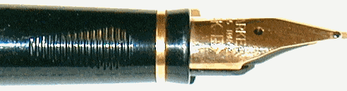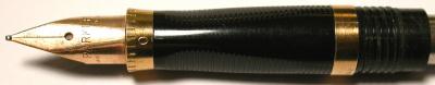 The ring was again changed to the final form - a thin gold-colored band. Apparently this was done because the wider bands were being corroded by inks. Matching this band was a 18K gold nib. |